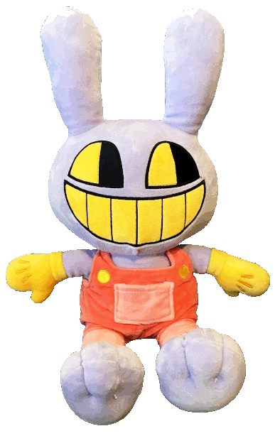 GP Store Jax Plush [view] One of the first plush products released from the series, next to Pomni. His palms are facing downward so that he can hold hands with Pomni's upward palm. |