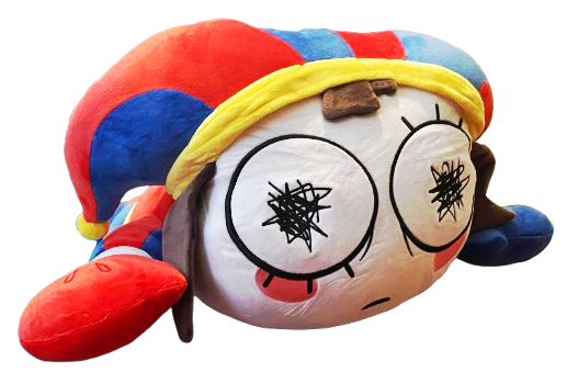Infolens BIG Plush Toy [view] Obtainable and officially licensed through crane games such as Molly Fantasy and Crane Yokocho. Arguably the cutest & most on-model Pomni plush. There's different sizes of this design, and this is the biggest one at 23 cm. |