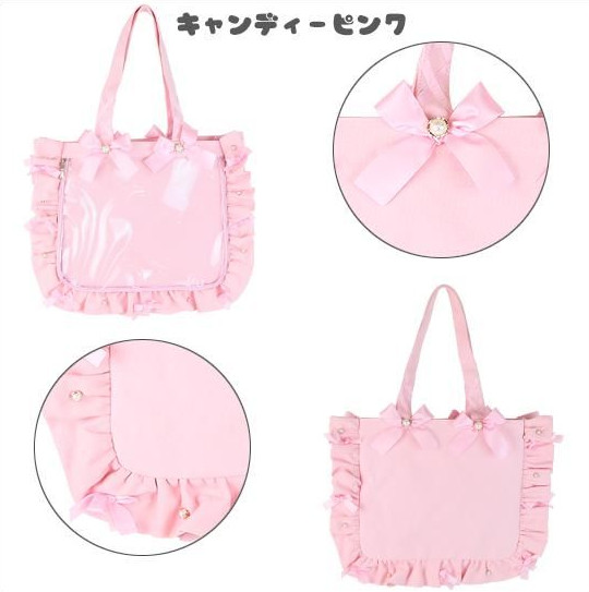 My ideal design is basic in construction and unintrusive. The bags in these references don't overshadow the arrangement, and are tied together by a common color which makes it even pleasing to look at if you squint. How sad would it be to have all these expensive pieces but all you see is the bag? Their owners have also pinned towels and handkerchiefs of their oshi and framed them with charms, reminding us that itabagging is just a wearable collage. The only problem I have about these itabags is that if a ¥5,000 badge dropped loose, or if the towels caught onto something, there'd be no window to catch it...