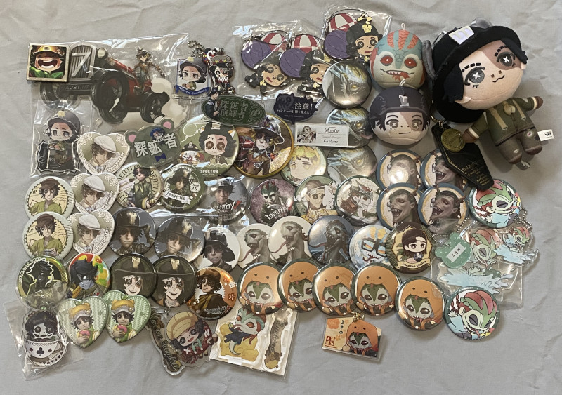 This dates the biggest haul of must-have pieces such as Priroll badges, first-release promotional illustration can badges, and omanjuu balls. The ones I was looking forward to the most from my online haul are the badge sets of stageplay Norton and Luchino. The cat-ear Norton doll is pretty rare and expensive as well, but I kind of prefer the normal one. Thankfully I have room on my bag for both of them.